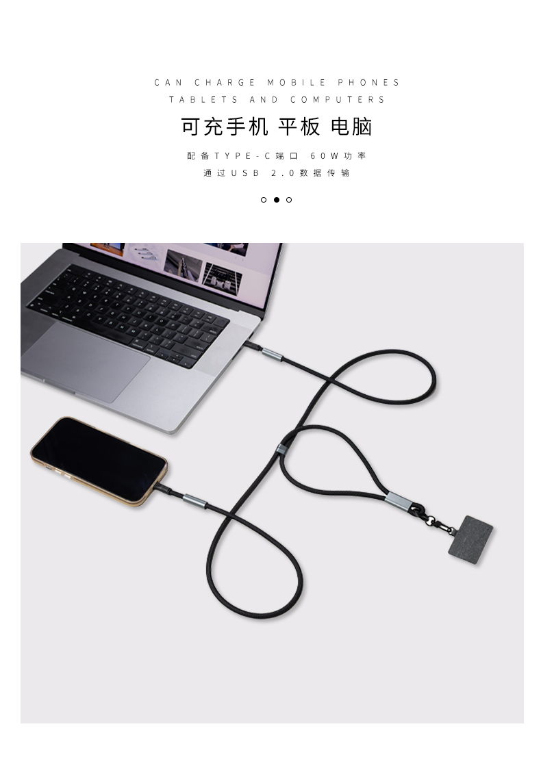 1.不僅僅是一條充電線,它還是一條時尚的手機(jī)掛繩,速度很快